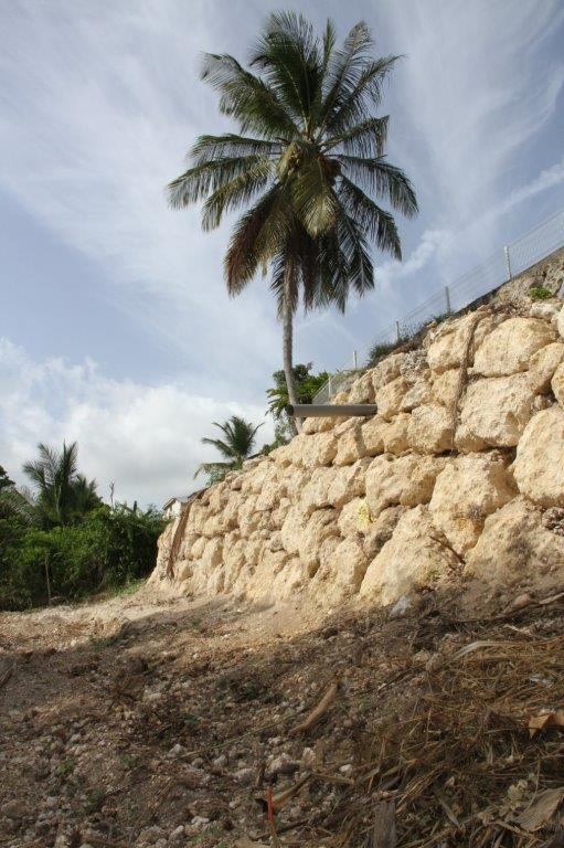 L' enrochement est un soutènement, un mur poids en roche calcaire ou volcanique. Son poids, l'imbrication des roches les unes dans les autres permettent de lutter contre les efforts du remblais.